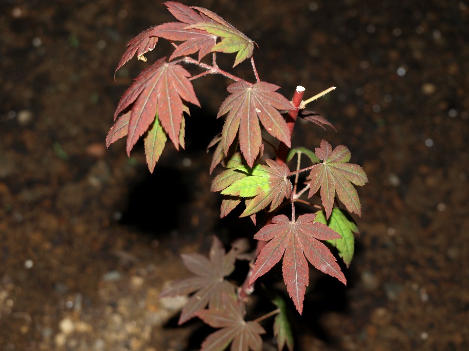 今日はモミジの株(ムチャ小さい)から出ている葉が、赤から新緑に変わって来たのを発見しました。