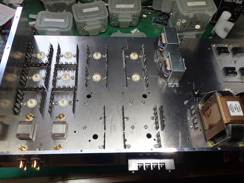 この様なアンプを組み立てる時に大事なのは手順。やみくもに始めると途中でにっちもさっちも行かなく成ります。