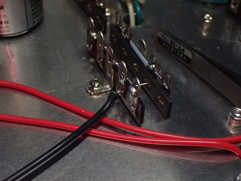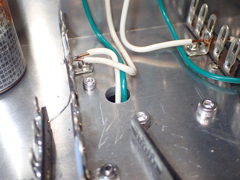 この穴の位置もトランス端子の真下。最短距離配線は基本です。