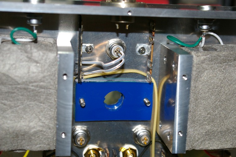 取り付けたブロックの下半分。この溝に真空管を入れ、上側にも同じブロックを取り付けてクランプします。