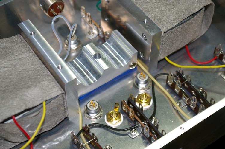 真空管をアルミのブロックでクランプ。