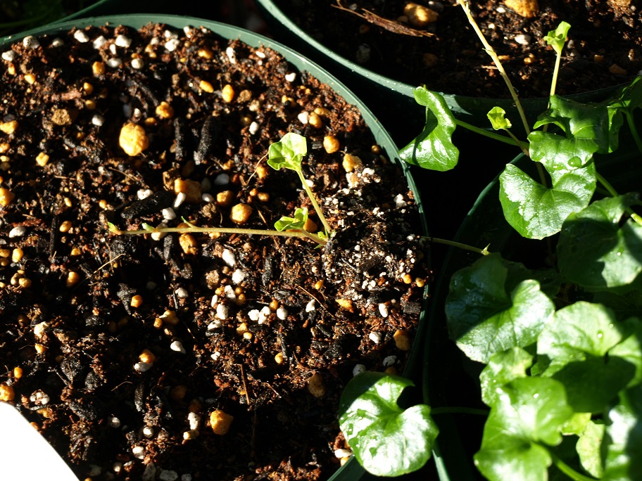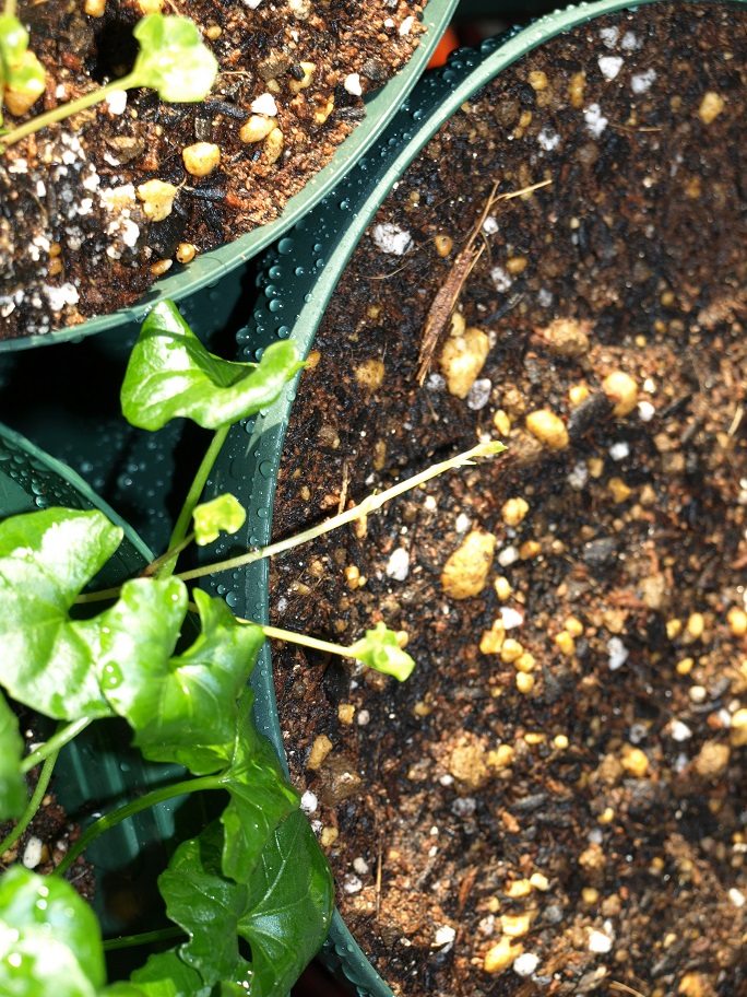 ランナーを鉢から外へ出しました。直ぐにピンキー君はランナーを受け入れる鉢をセット(この辺のストックは沢山有るので・・・・・汗)。