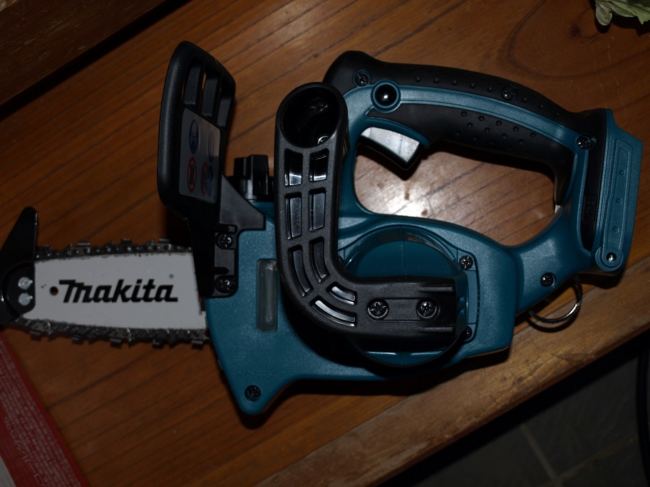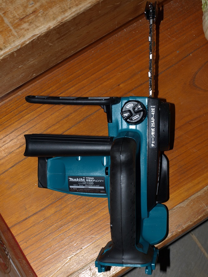 ただこの新型、片手での使用です。小型で魅力は感じたのですがチェーンソーの反力は大きい。慣れていない僕にはヤバいかも・・・。