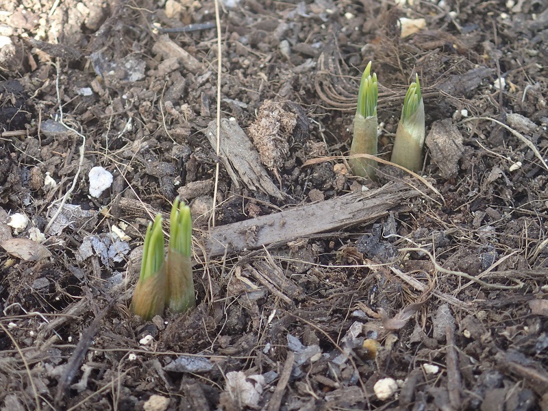 コイツは2月下旬ころには咲くみたいなので、葉が成長を始めています。こいつは30球植えました。