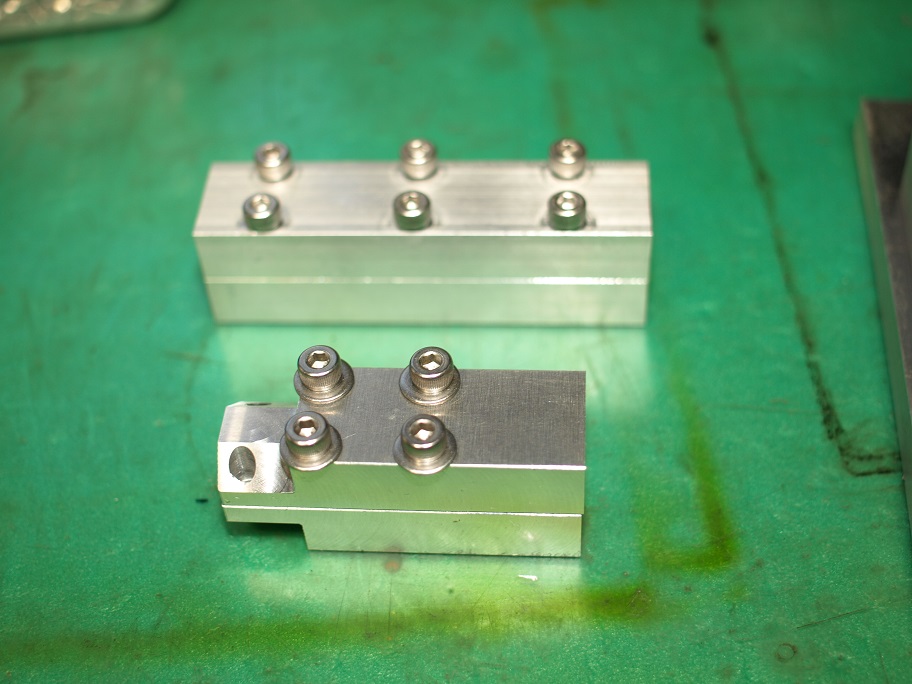 手前は旧型のギヤボックス用です。旧型を作っていた頃にはこの治具が有りませんでした。