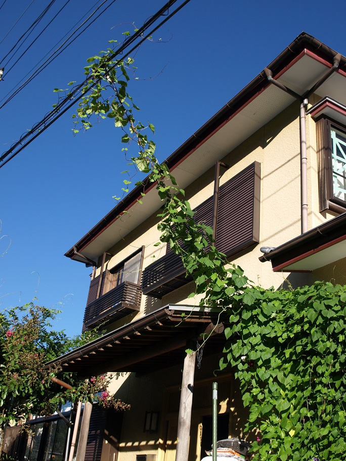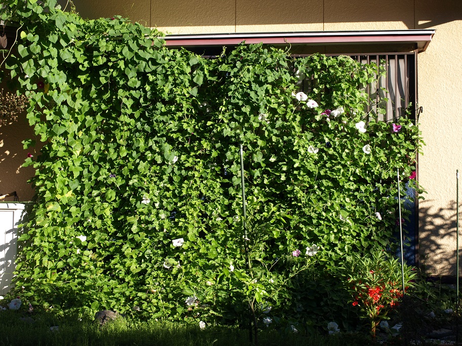 近所の人達も呆れています。朝顔ってこんなに伸びるのかい?
