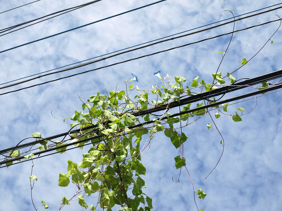 朝顔を剥がしたのは正解だったみたいです。落とした庭師さんが言うには『落とした葉の重量は10kgを超えていたと思うよ。あの状態で台風でも来たら確実にケーブルは切れたね。』