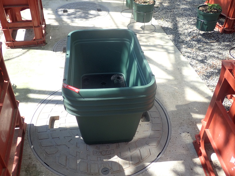 大き目のプランターを4個。このサイズなら6株育てられるな。との読みで選びました。