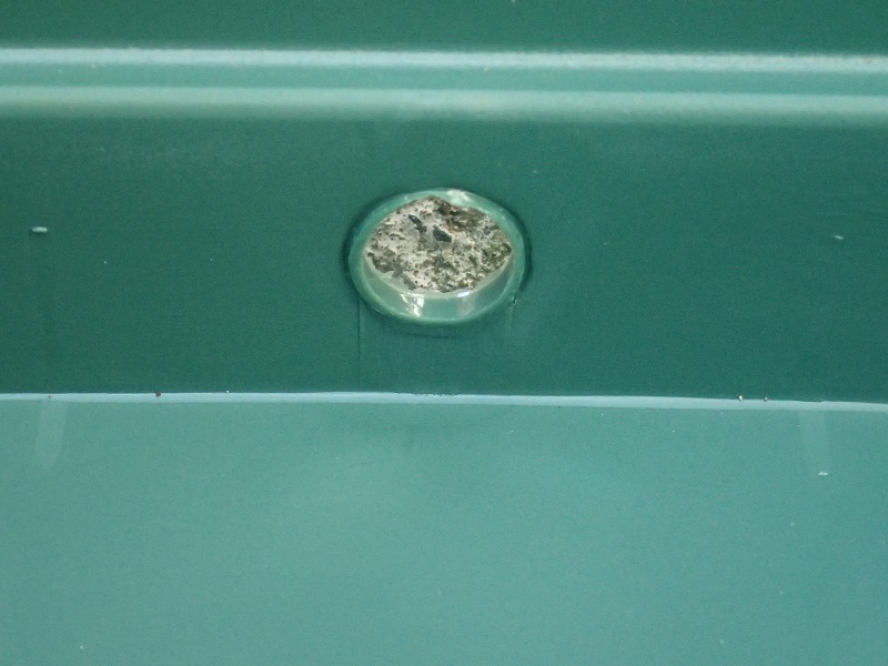 サイドの写真。底の方に1個の穴。水抜き用の穴です。反対側には開いていません。