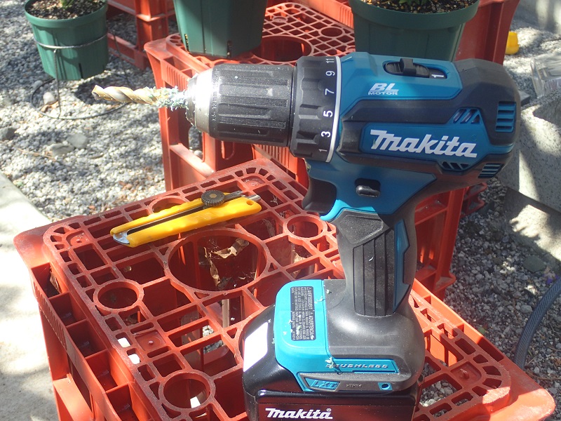 穴を底まで拡大。ドリルで揉んだのでいい加減な形ですがまあいいか。