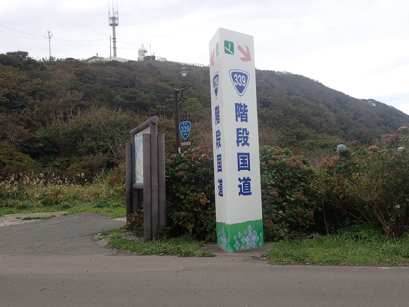 気を取り直して竜飛岬の高い部分へ移動しますが、此処の国道339号線。此処から先はなんと階段です。つまり車は走れません。有名な階段国道。