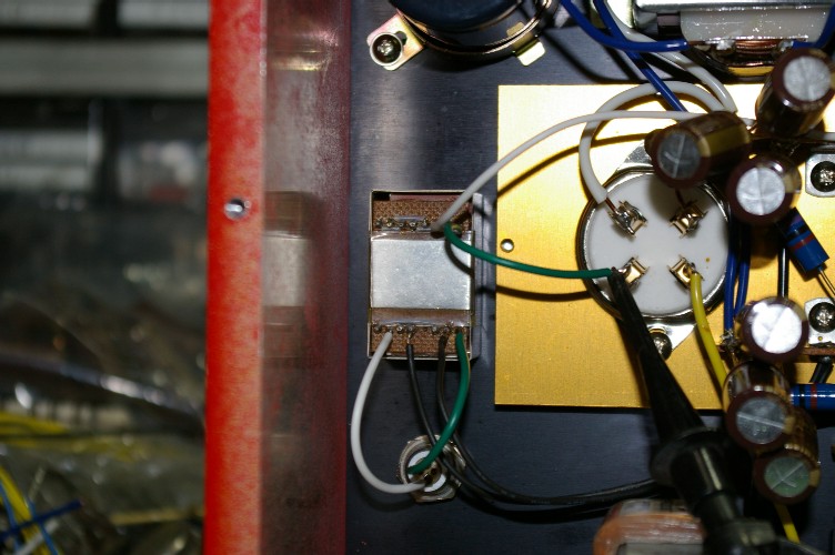 取り付けの済んだトランス。コレでOKでは有りません。二次側のターミネーター抵抗の調整が有ります。