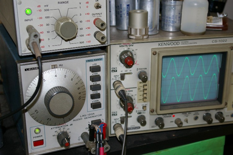 測定結果。オシロには綺麗なサインウェーブが描かれています。