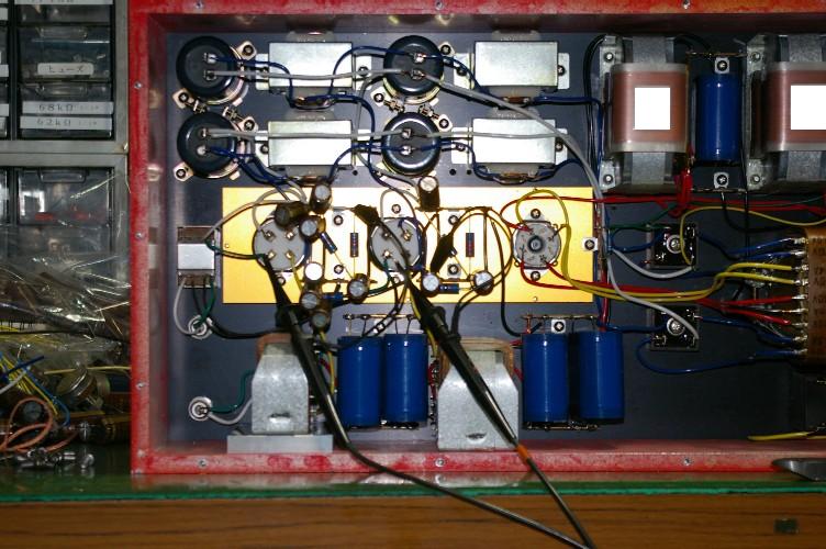 暫くぶりのアンプ内部。まだトランスの付いていない状態です。