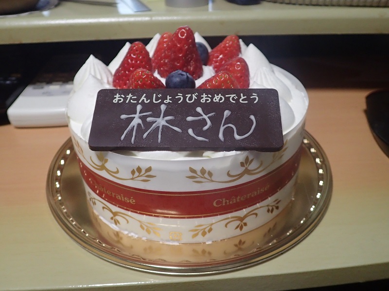 自分の誕生日祝いのケーキを食べるのは生まれて初めて(大汗)。