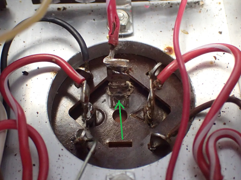 その後、無事と見えた2個の端子(写真両側)。測定すると此れもブッブー。