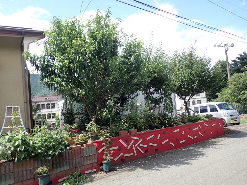 一番手前の大きな木。3年前に植えた花桃。その時には40~50cmの樹高だった苗木。