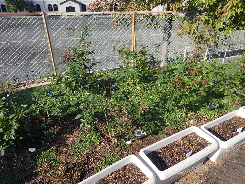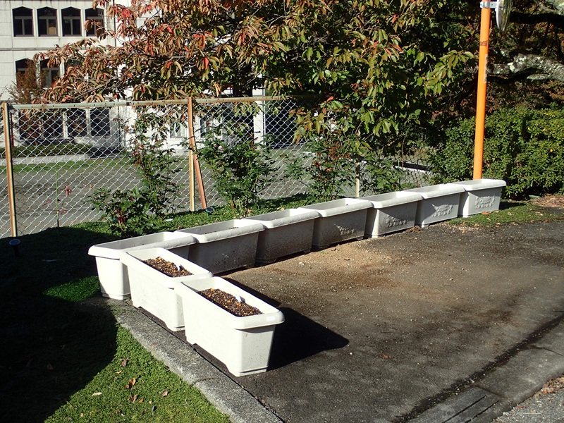 直接植えるとバラの手入れの邪魔。簡単に移動出来るプランターを9個並べたのです。勿論全てのプランターに球根を植え付け済み。何が咲くかは来春の楽しみ。