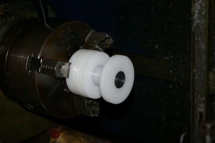 其の太さにドンピシャの(若干キツメ)穴をくり貫いた巻枠をジュラコンで。