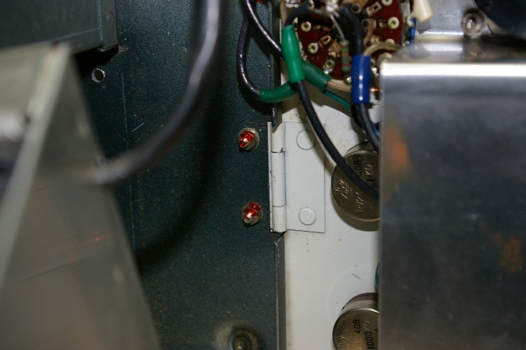 ケミコンもリベット止め。まあケミコンの場合は、バンドのネジを緩めれば外れますので、純正ケミコンが手に入るうちは此れでOKです。