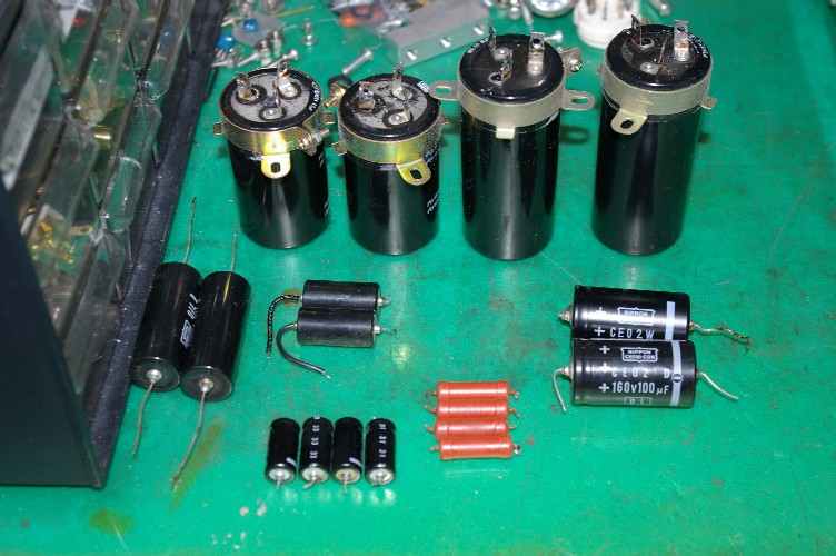 大きなブロックコンデンサーは電源のリップルフィルター用と、初段、2段目のデカップリングコンデンサー、此れの交換が一番大変ですね。