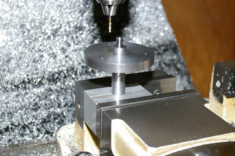 3個の穴ですから120°で振り割ります。この時役に立つのが学校で習ったサイン、コサイン、タンジェント。フライスの台は2/100mm単位で位置を決められますから、狙った位置にピッタシカンカン。