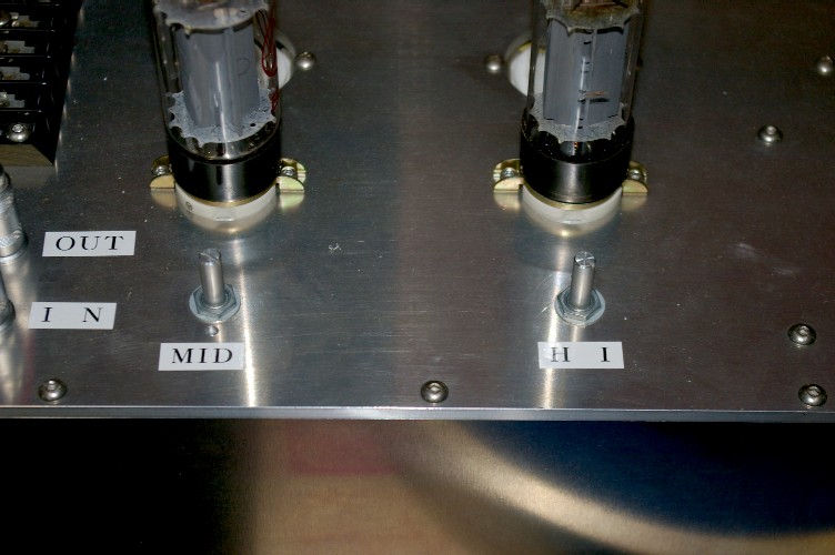 写真では見辛いですね。オイロダインのドライバーのレベル調整がMID。フォステクスのミッドハイのレベルがHI。