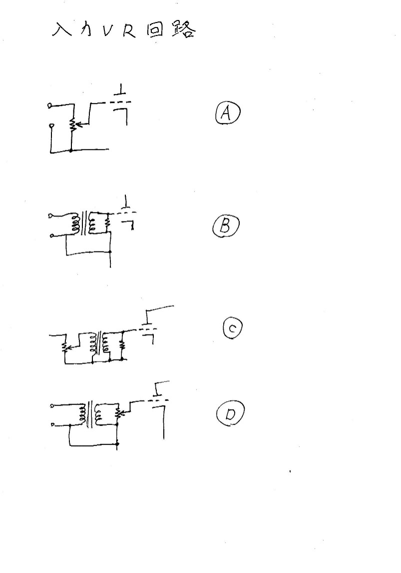 そう成ると、VRをトランスの1次側に入れるCの回路と2次側に入れるDの回路が考えられます。