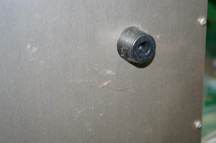 底板の足の周りには埃がまとわり付いています。