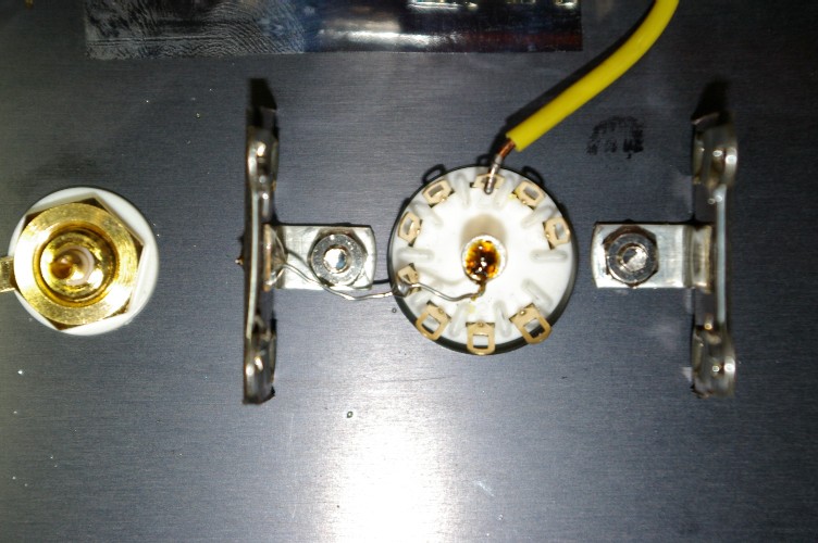 真空管ソケットのブロング(端子金具)。手で触るとグラグラです。