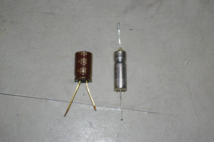 右は銀タンタルコンデンサー。ノイズレベルの低さで使いたいのですが、音質に問題が・・・・。