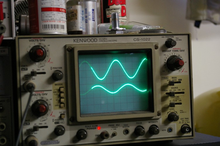 上下の波形が逆さまですが、180度狂っているのですから当然ですし、この方が位相のズレが見易いですね。