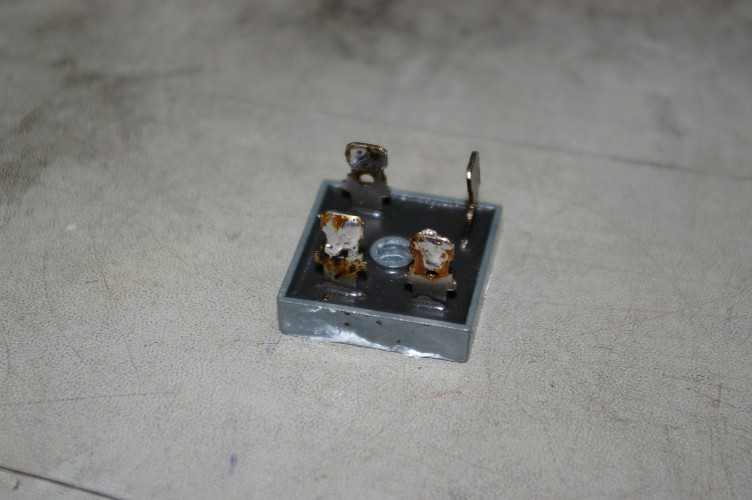 外したシリコンブリッジダイオード。テスターで測っても異常は出ない。