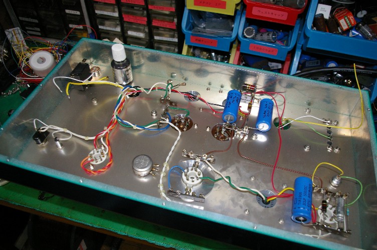 只今パワーアンプの改造中。こいつを片付けないと、店の中が・・・・・・(汗)。