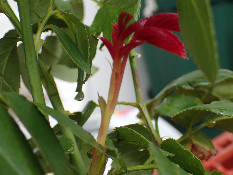 1本だけ残った鉢植えのバラ(ミニバラは除いて)。コイツがチョイヤバイ。
