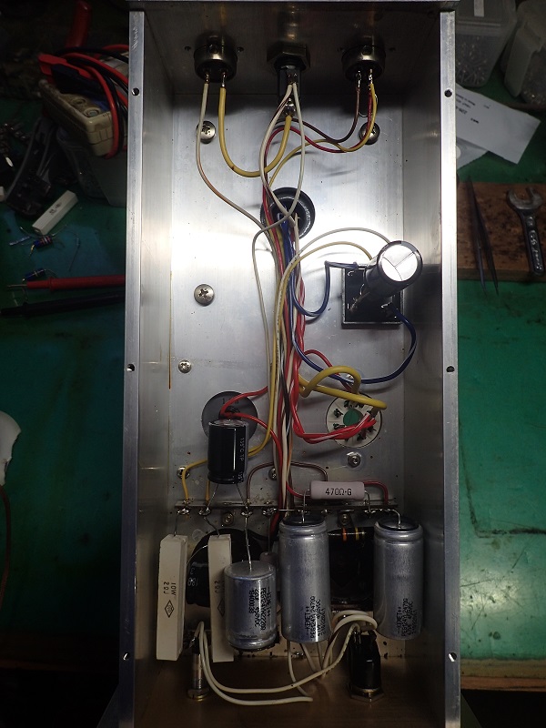 アンプを作られた方ならご理解出来ると思うのですが、もの凄い手間が掛かります。電源ラインの配線は全てし直しと言う・・・。