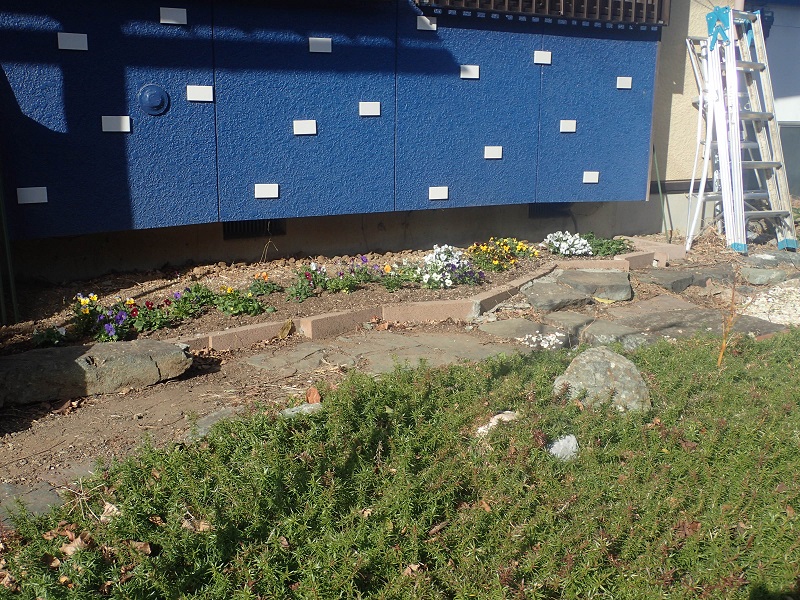 此処も土壌改良をシッカリとやり(深さ40cm迄掘り起こし、小石をふるいで振るって廃棄)空いている全ての所へムスカリを植え付けました。