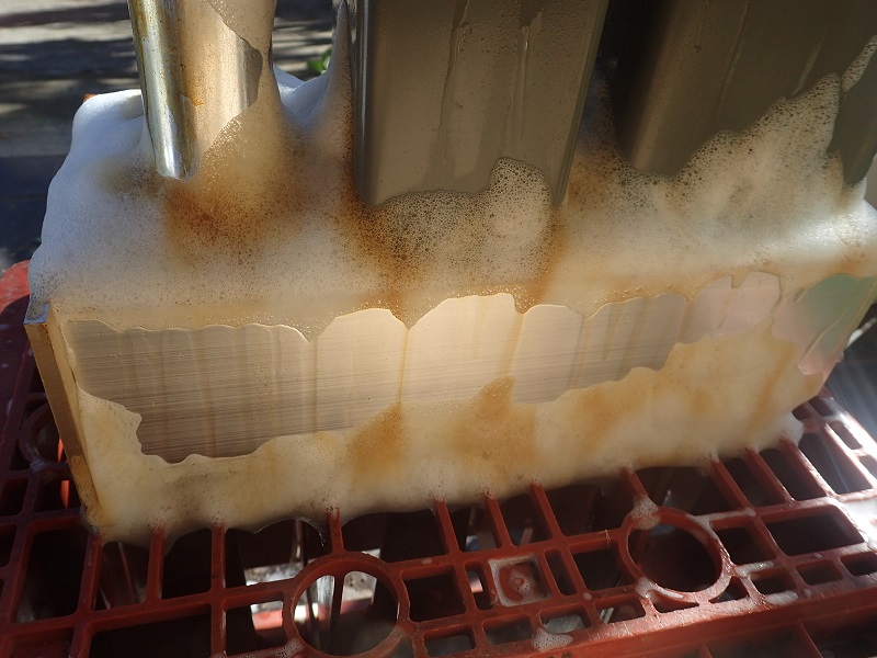 何しろ水でジャバジャバ洗うと言う荒業ですので、家の中では不可能です。