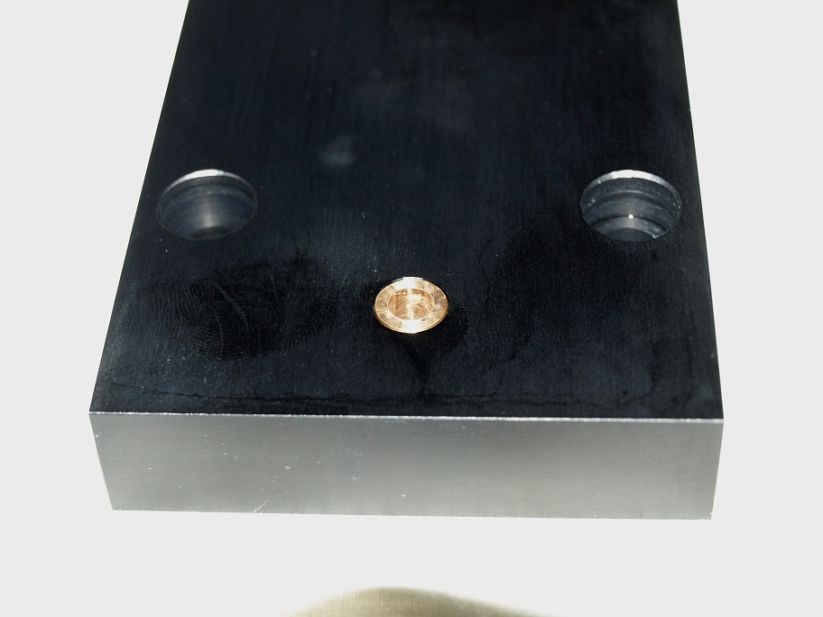 操作シャフトが入る穴です。アルミで直に受けると摩耗が発生します。